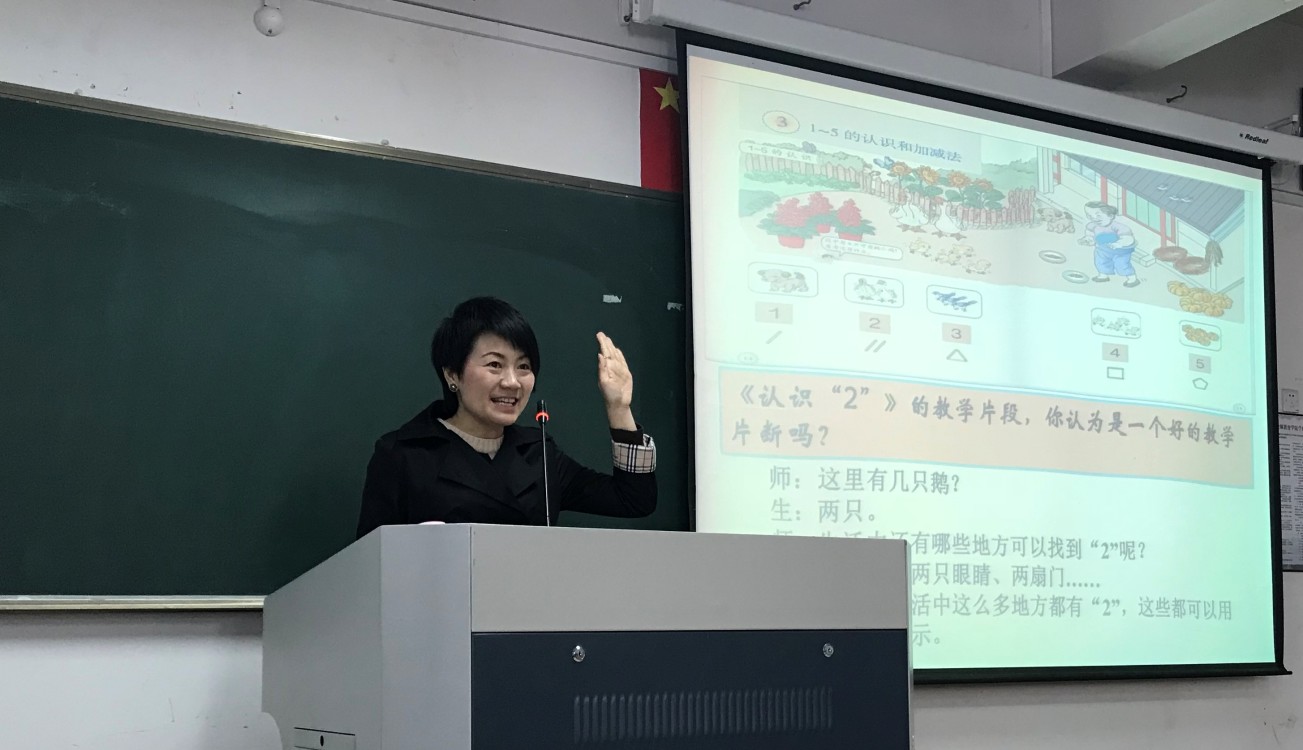 首先南老师展示了新版小学教材在“1-5的认识和加减法”课程的编排,通过与旧版教材的对比,向我们介绍了其编排的精妙之处。南老师强调学习数数就是让学生认识到符号的抽象性。在教学的过程中,教师可以通过一些例子和运用变式,帮助学生体会到数的抽象性,理解物体的个数与它的物质属性并没有关系。在基数和序数的学习中,教师要让学生理解这两者含义上的不同点,经历从感受到体验再到归纳的过程,培养学生的数感。