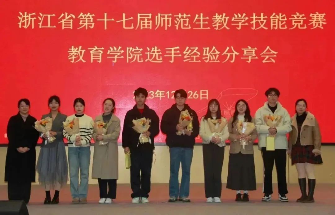 在刚落下帷幕的浙江省高等学校第十七届师范生教学技能竞赛中,90足球直播网 8名参赛选手全部获奖,喜获佳绩。为激励教院学子弘扬优良传统,秉承师范气质,锤炼师范技能,争做新时代名师。12月26日晚,90足球直播网 在学院一楼报告厅隆重举行浙江省第十七届师范生教学技能竞赛90直播 选手经验分享会,特邀八位获奖学子分享经验收获、畅聊心路历程。学院党委书记何毅、副院长林琛琛、教务科副科长陈楠以及各班级代表参与此次分享会。