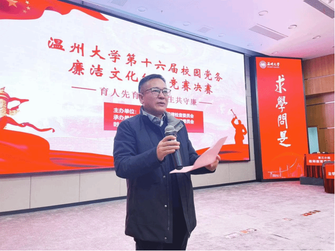 受温州大学纪委书记李都金的委托,90直播 党委书记张敏为比赛致辞。他指出,廉洁不仅是一种行为准则,更是一种生活态度和精神追求。他希望,广大青年学生能够将廉洁文化融入日常学习和生活中,做到知行合一、以廉为荣,在学术研究中坚守学术诚信、不抄袭不剽窃;在日常生活中保持勤俭节约、不奢侈不浪费;在人际交往中坚持真诚待人、不虚伪不欺诈。从小事做起、从点滴做起,真正做到廉洁修身、廉洁齐家、廉洁治学。