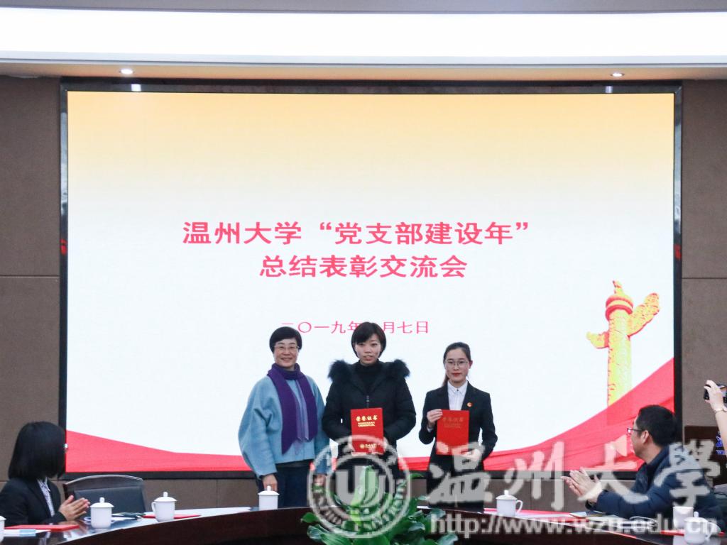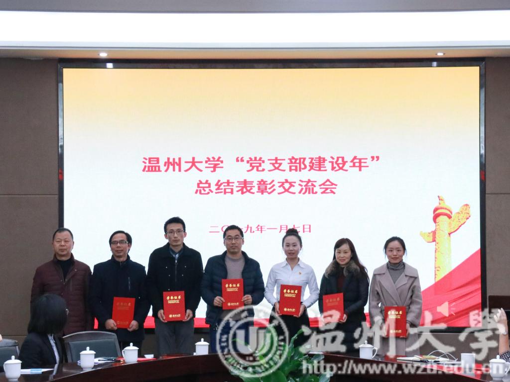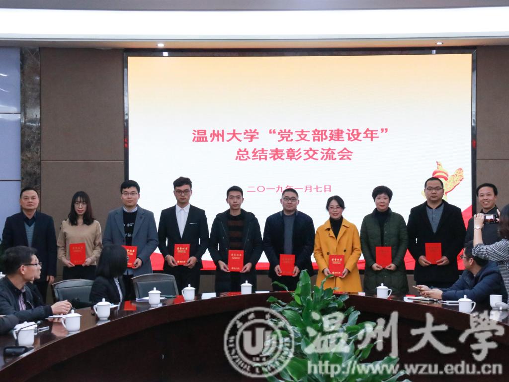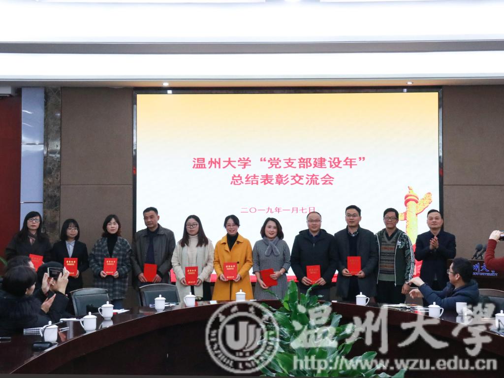 会议表彰了2018年温州大学“党支部建设年”“十佳特色标兵党支部”、“十佳好支书”、2018年浙江省新时代“千名好支书”、“万名好党员”、浙江省高校“双百示范”工程首批党建示范群、首批党建特色品牌、入选全国高校“两学一做”支部风采展示的党支部、“全国党建工作样板支部”培育创建立项等五个类别的先进集体和个人。