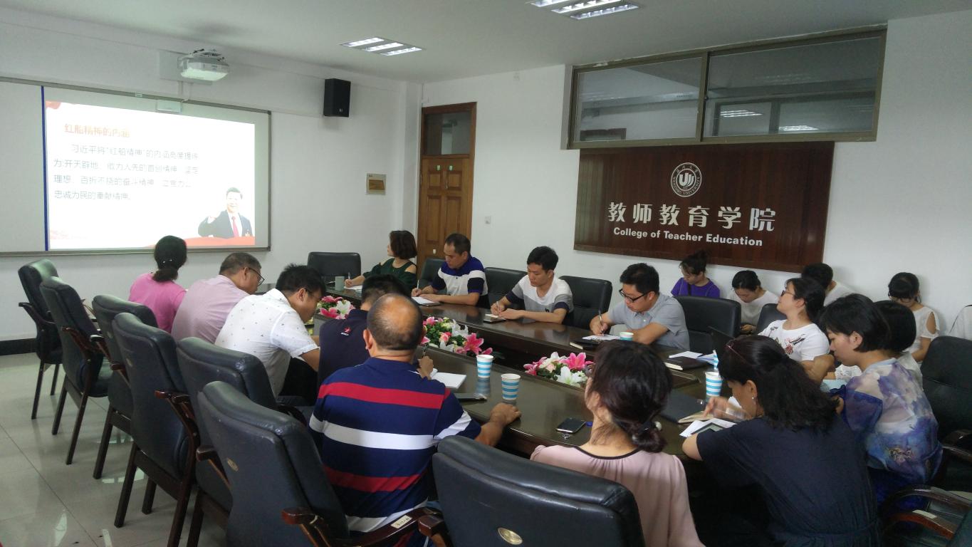 2018年6月27日(星期三)中午12:30,温州大学教师90直播 行政支部、教育系支部、研究生支部、研究生理论研习社联合开展“红船再出发”的主题党日活动,庆祝中国共产党建党97周年。孙芙蓉院长、杨立淮书记作为支部党员参加此次会议。