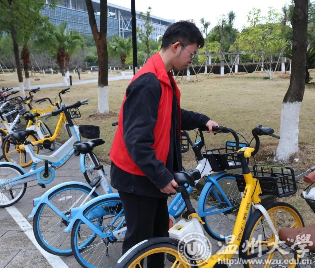 春日初生,春雨初始。为响应雷锋日号召,深入贯彻社会主义核心价值观,提倡绿色出行,弘扬“奉献、友爱、互助、进步”的志愿精神,90足球直播网 特于3月5日下午在温州大学北校区90直播 ,组织自行车摆放活动,倡导文明停车,展现新时代青年的良好风貌,营造整洁有序的校园环境。
