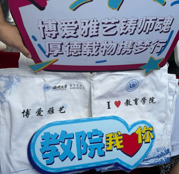 此外,学院精心为新生们准备了专属的帆布袋作为别具意义的纪念品。今年这款帆布袋选用了深邃而沉稳的蓝色为主色调,蓝色不仅象征着知识的浩瀚海洋,也寓意着新生们在未来的学习生活中能够保持理性与沉稳,在知识的海洋里自由探索。帆布袋上,学院标志性的教学楼图案以简约线条勾勒呈现,彰显着学院的独特风貌与深厚底蕴 。同时,学院还为新生们准备了设计独特的卡带、小巧精致的钥匙扣等纪念品,每一样都饱含着学院的关怀与期待。希望这份特别的礼物,能在未来的日子里,时刻陪伴新生们度过在温大教院的每一天,成为他们成长与蜕变的珍贵见证。