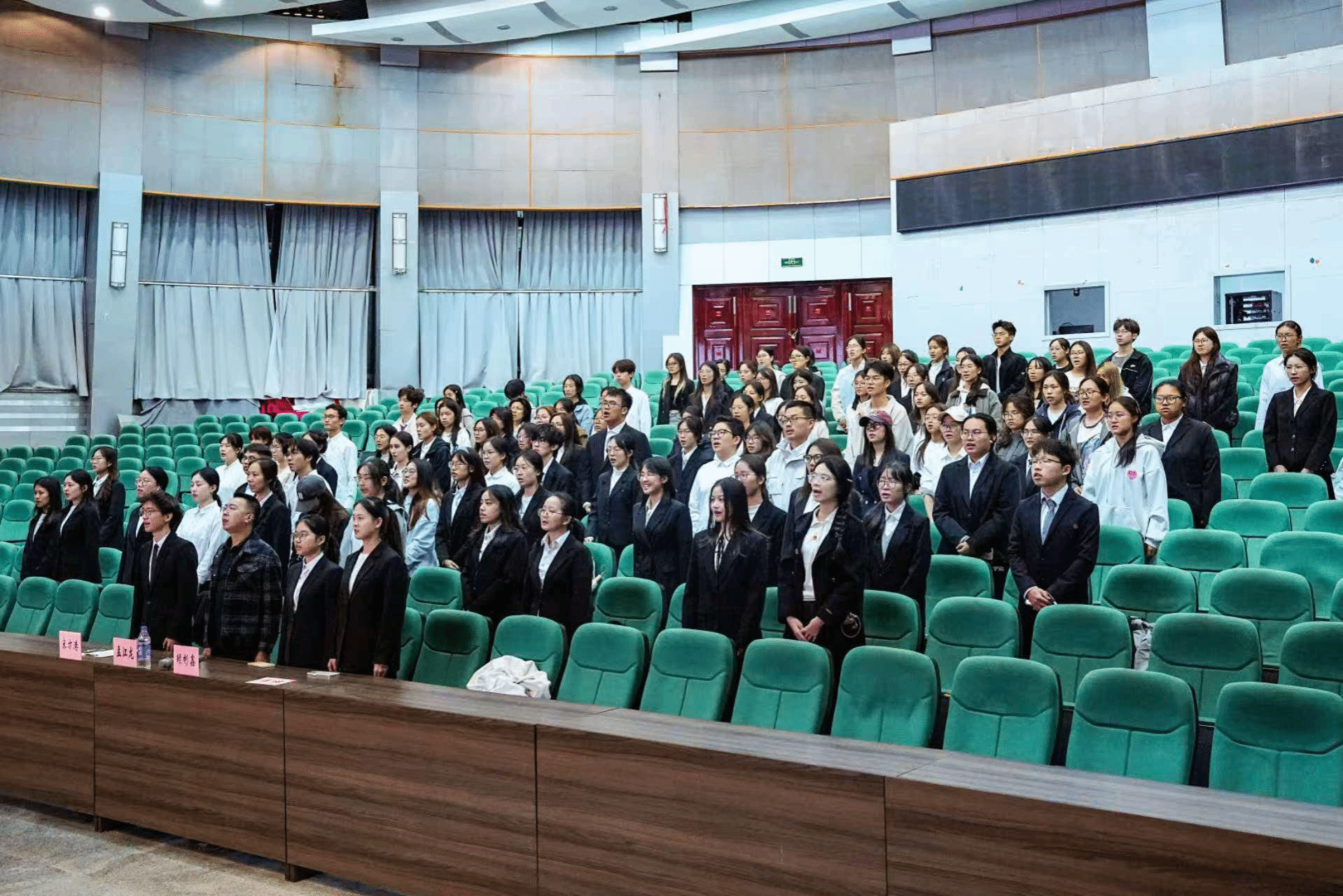 随后,主持人宣读新任主席团成员名单,分别为90直播 团委、90直播 学生会主席团执行主席兼团委副书记:赖彬鑫;90直播 团委、90直播 学生会主席团执行主席:倪宸好;90直播 团委、90直播 学生会主席团执行主席:李铭;90直播 团委、90直播 学生会主席团执行主席:张潇格;90直播 团委、90直播 学生会主席团执行主席:宋方港。新任主席团代表李铭主席进行就职发言,她对全体成员的信任与支持表示感谢,明确了新学年工作方向,希望各部门将各司其职、协同发力,深化团组织建设、打造特色校园文化、聚焦志愿服务与实践育人,搭建优质成长平台。