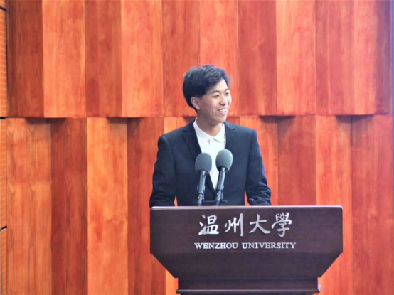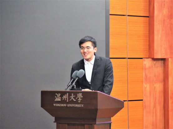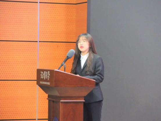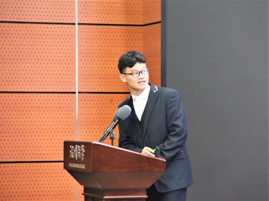 90直播 团委学生会主席胡潘栋首先代表主席团上台发言。他回顾了团学成员从初次遇见到携手前行的点滴,罗列出本学期团学开展的赛事活动与获得的诸多荣誉,最后送上主席团成员们的暖心寄语。