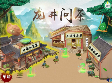 《龙井问茶》是一个交互式教学课件,制作软件采用Flash 和CINEMA 4D,内容为有关西湖龙井的乡土文化教育,是面向小学高年级段及初中学生的演示型课件。该课件包括: