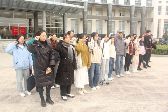 随后,学生代表刘寄傲带领同学们一同宣誓,发出新世纪“一二·九”的呐喊,志在积极将强烈的爱国情怀升华到学习、行为、思想中来,展现了积极向上的精神风貌。