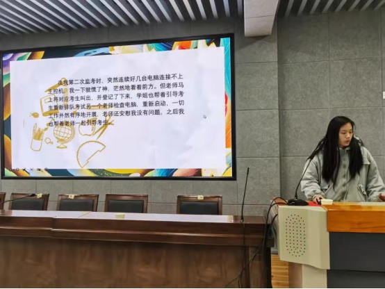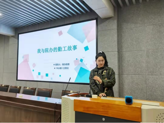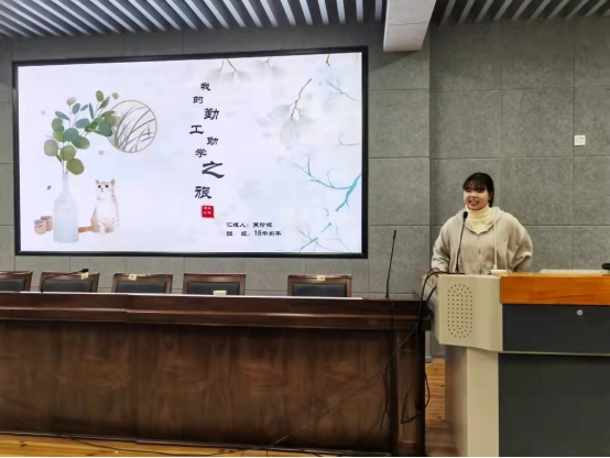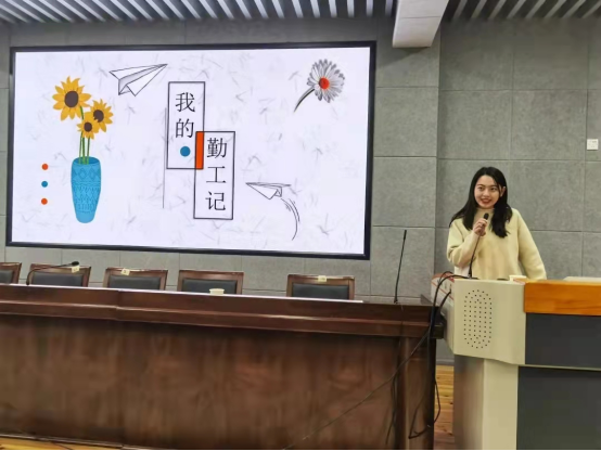 评选大会上,候选人依次登台展示,用朴实而真挚的话语讲述各自的成长故事,发展变化,总结勤工助学工作,畅谈勤工助学过程中的感悟与收获。