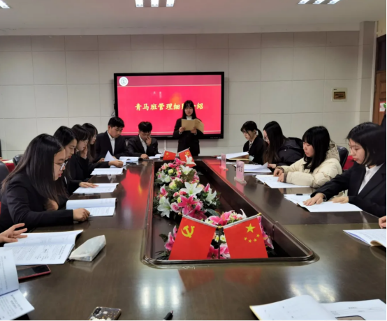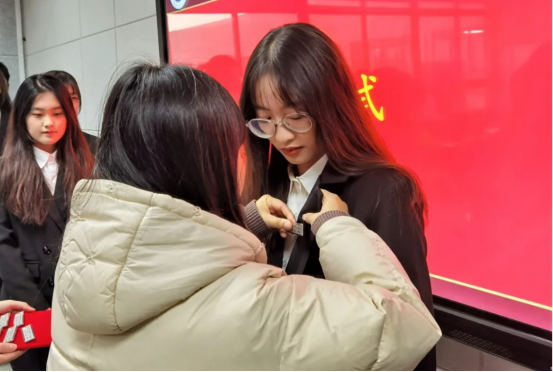 章园园从学生干部的定位、学生干部的意义和学生干部的要求三个方面讲解了如何成为“工作和日常作风过硬、综合素质高、专业精通”的学生干部,激励青马班学员提升自身各方面素质。授牌仪式上,由章园园为学员们佩戴胸章,愿学员们努力成长为“政治坚定,素质全面”的青马人。