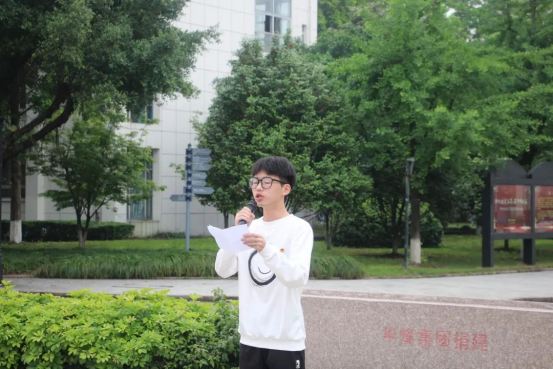 青年代表林靖凯同学带领全体参与人员共同诵读五四青春颂诗。“纵有千古,横有八荒;前途似海,来日方长”,中国以昂首之姿屹立世界之林,正是中国青年“虽千万人,吾往矣”的奉献和矢志不渝,累九层之塔,行万里之路才得以筑就。