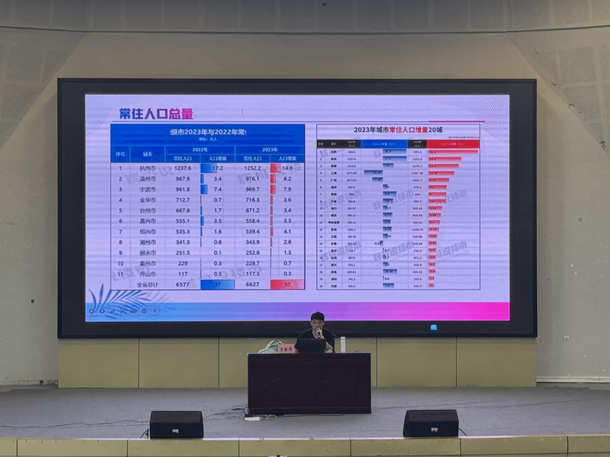 讲座伊始,李金伟老师简单介绍了目前温州在浙江省的经济实力、常住人口量以及增加趋势,分析了温州所蕴含的强大发展潜力和创新驱动力。除却经济的稳定发展,近年温州的城市规划和空间布局也得到极大改善。