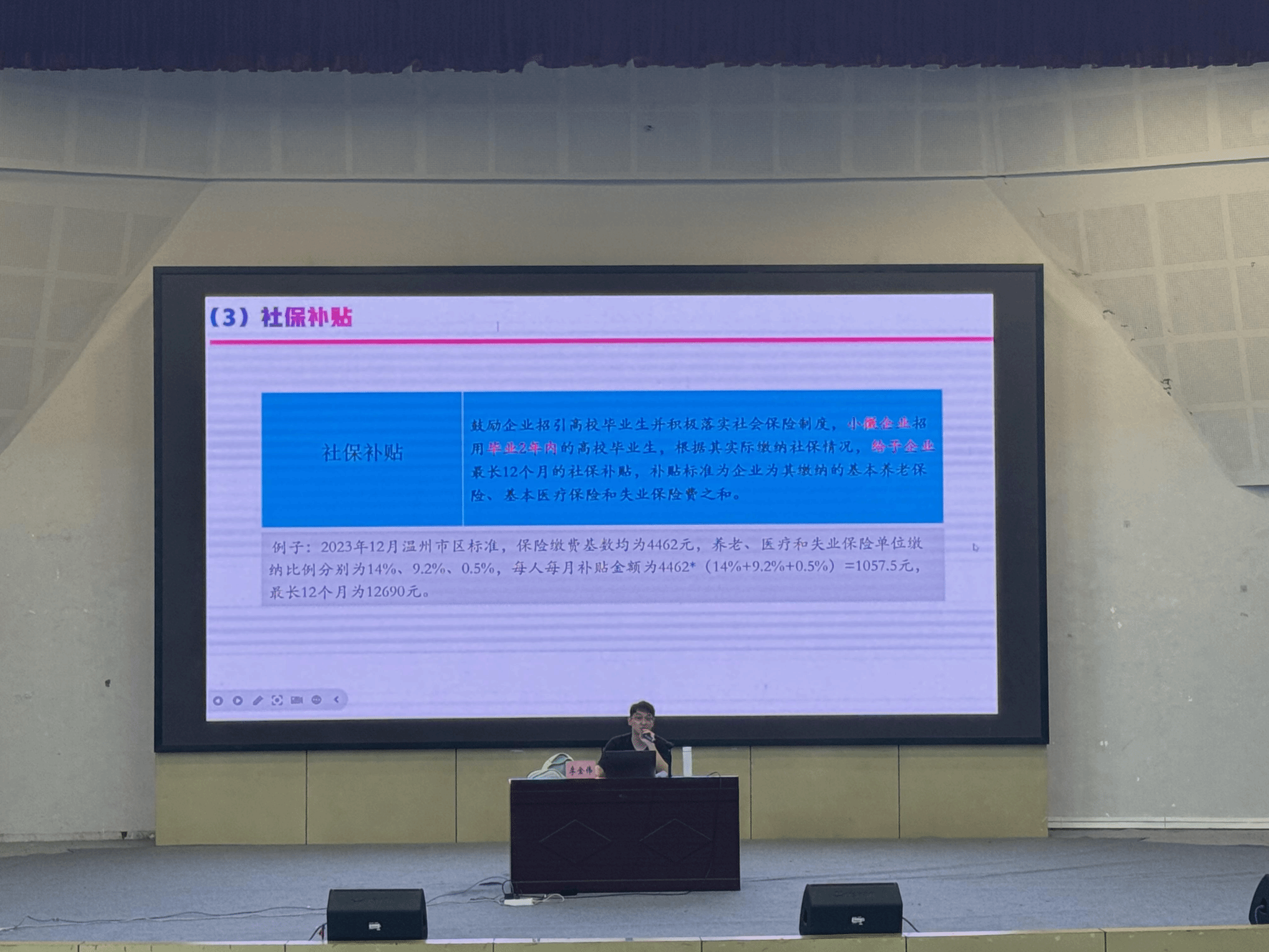 讲座期间,李老师除了进行细致入微的解读,还设置了多道人才政策相关的“计算题”,帮助在场学子更好的理解其政策优势以及留温之利,也调动了学生深入思考毕业留温的积极性。