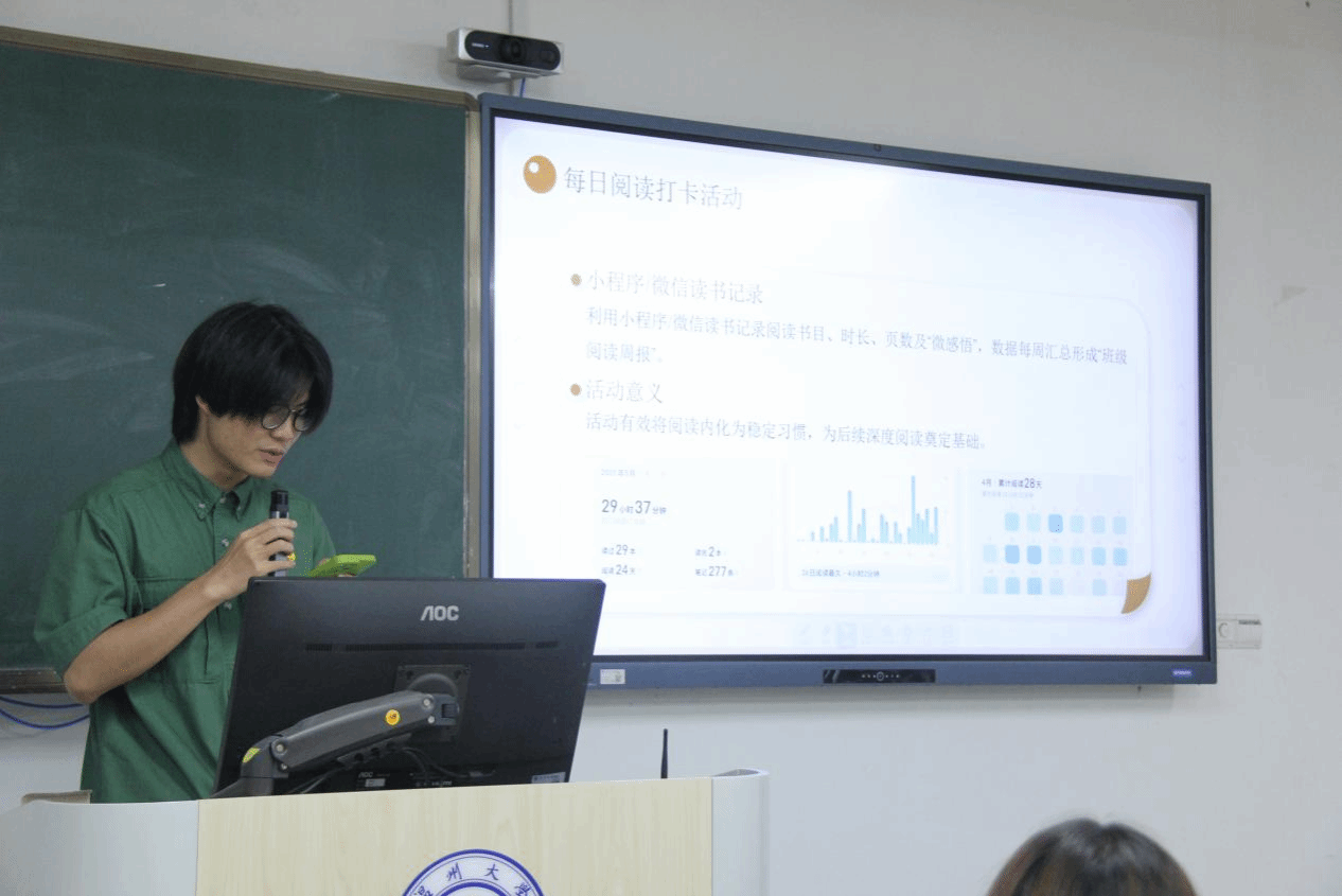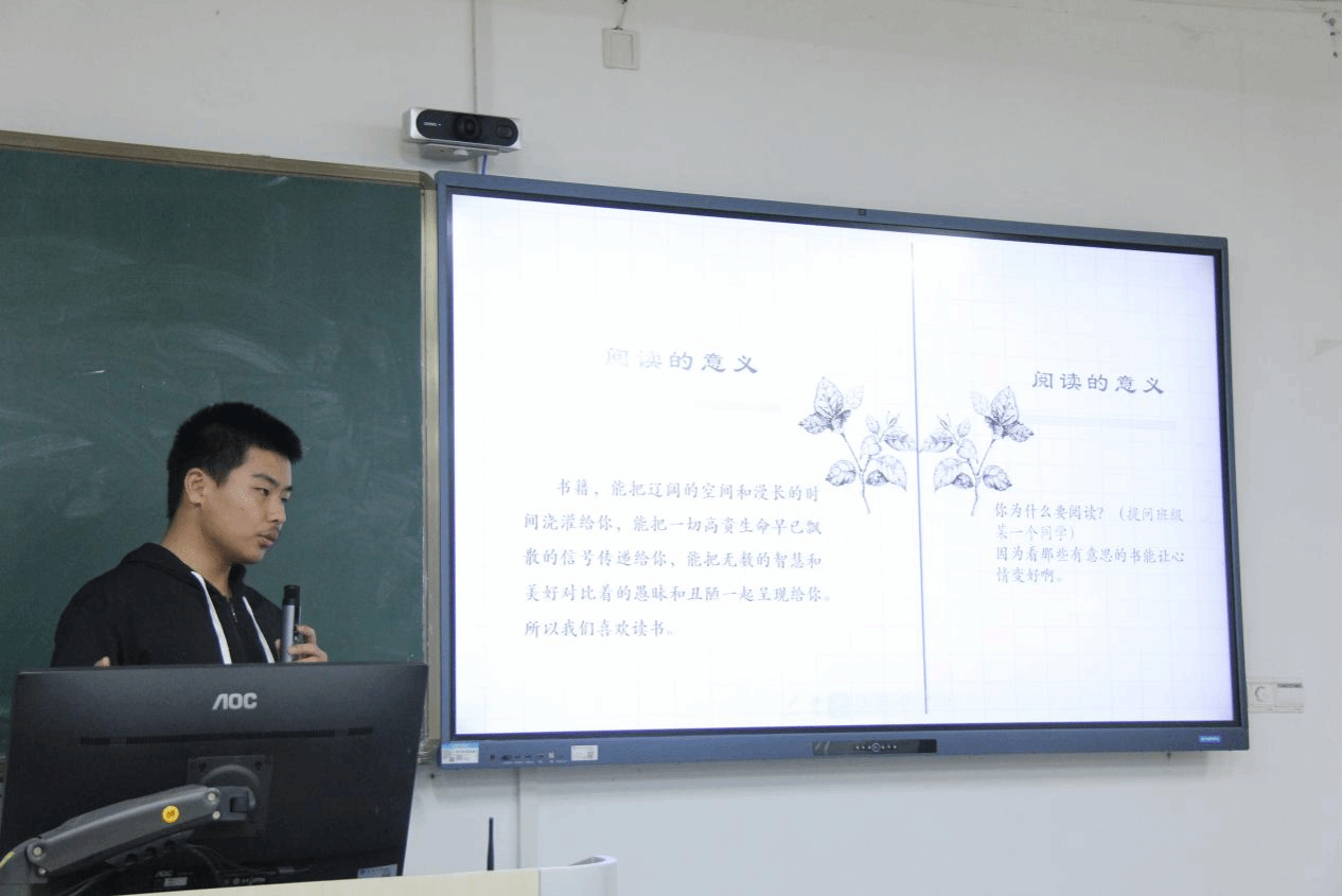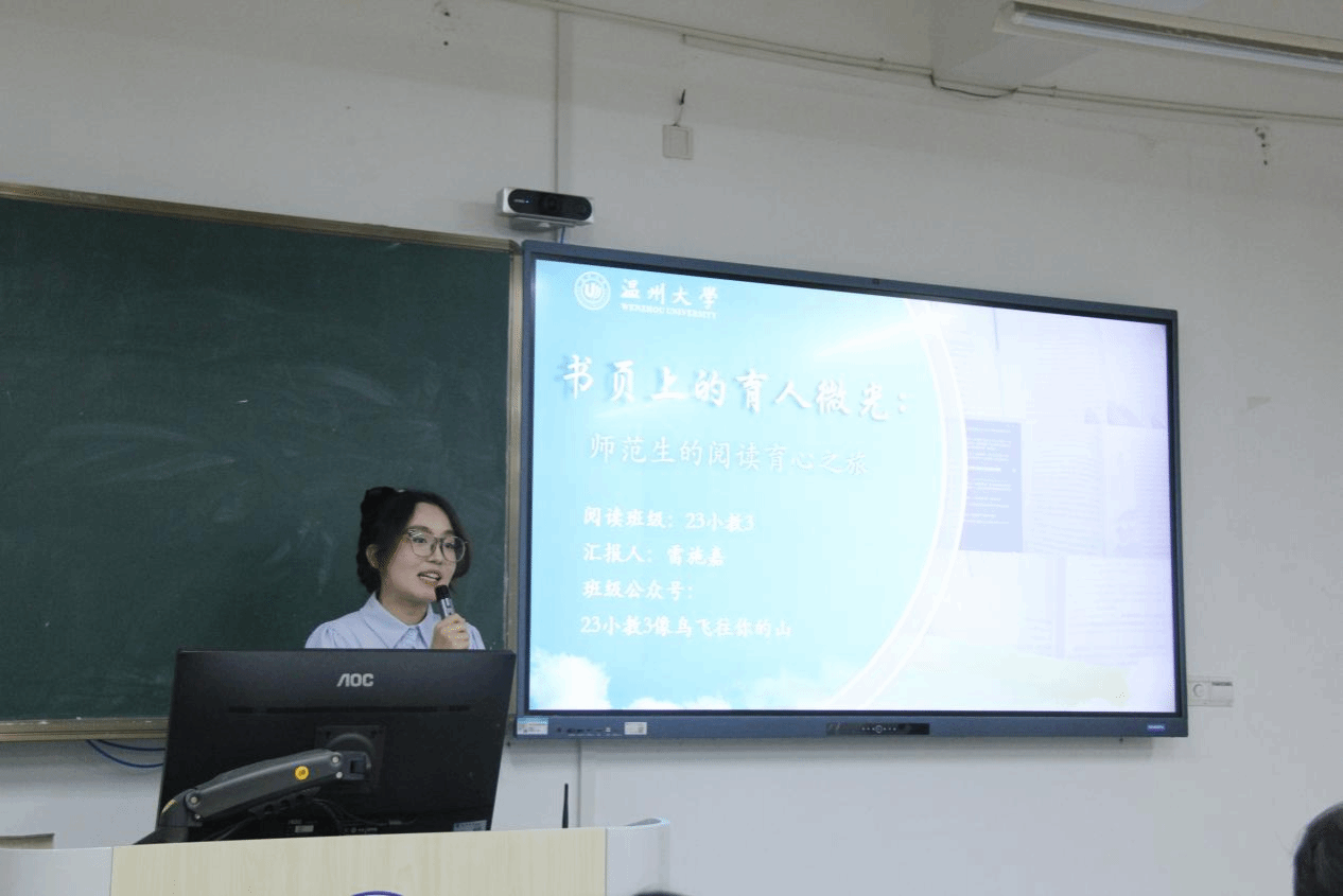 24小教1班同学介绍了过去一段时间班级阅读的基本情况,并且从专业角度分析了《小王子》《恋爱》《第七天》中关于教育的思考。同时,他们认为往事总在回忆中赋予意义,不同时间段阅读不同的作品都会有不同的感悟。