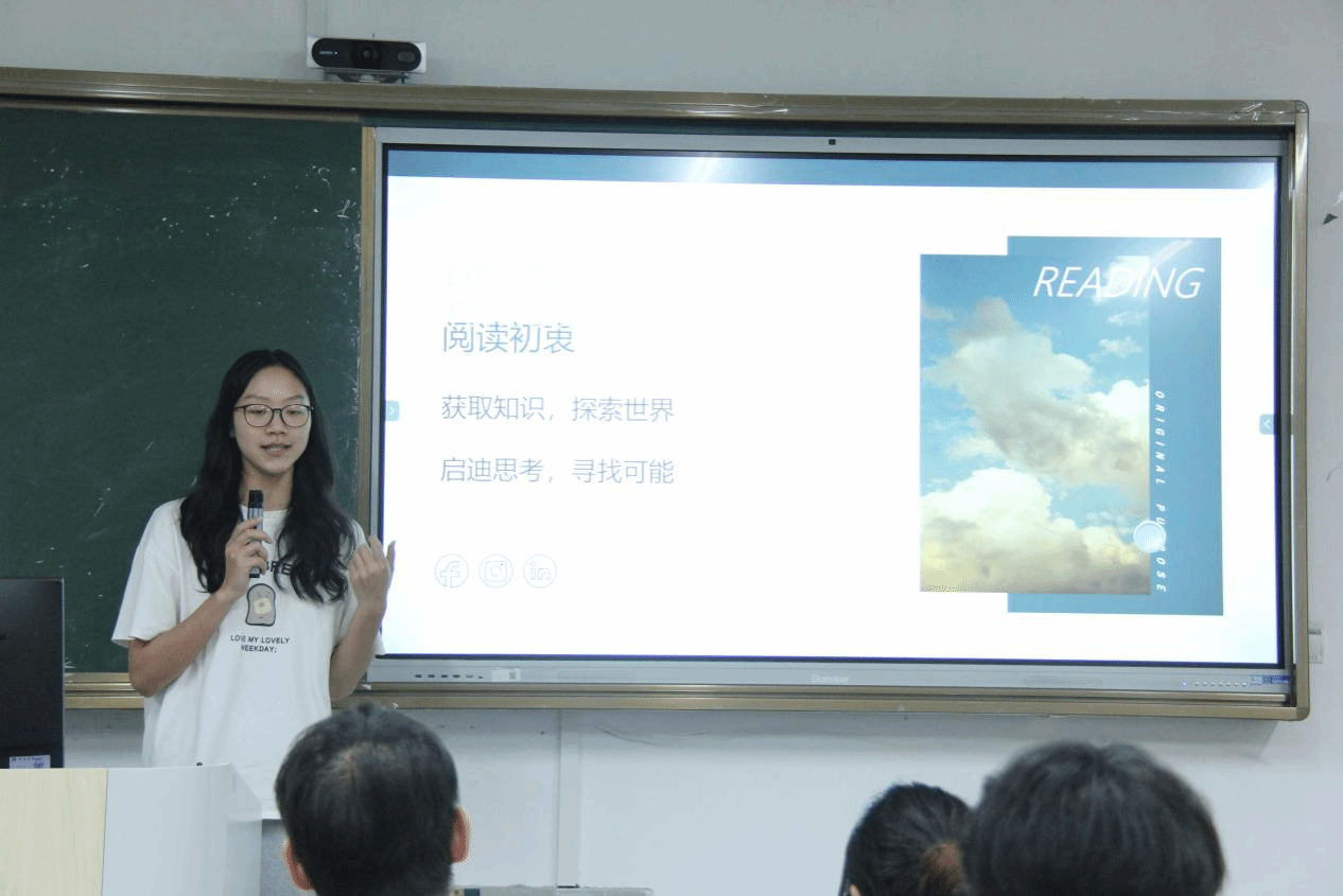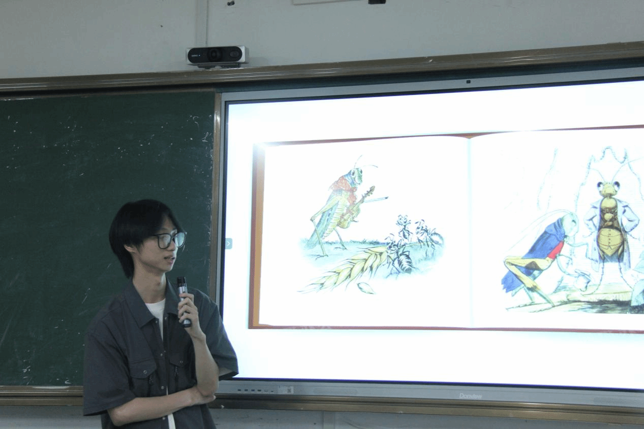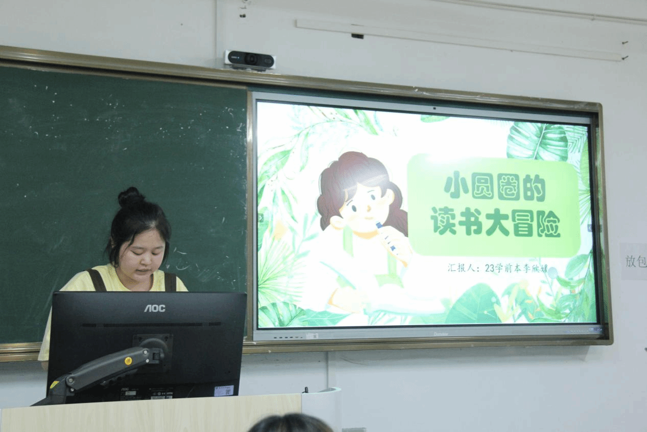 “曾经我是一颗种子,如今它在长大。”23小教2的王艺梦同学根据《爱的教育》梳理相关情节和主题价值,制作ppt,进行宣讲,用ai制作视频,表达自己对书籍中体悟到的生命与成长。23教技班蒋远同学点燃思维火炬。他以“镜与灯:在乌托邦与敌托邦之间”为题,展开了一场跨越千年的思想对话。23小教3林家伊同学则从几个方面介绍了自己阅读的书籍阅读课程标准表达了自己对于课程标准变化的思考。阅读为我们提供锦囊,使我们在未来的人生中不至于两手空空。