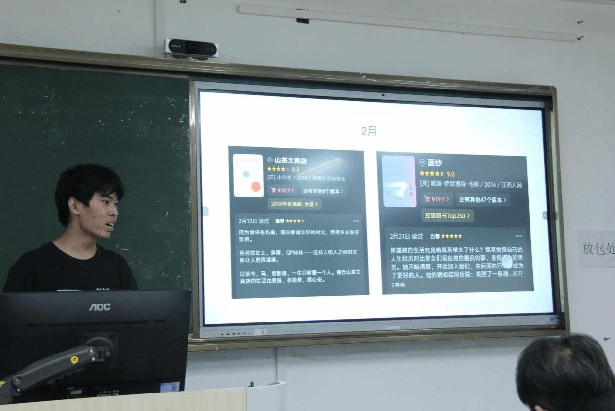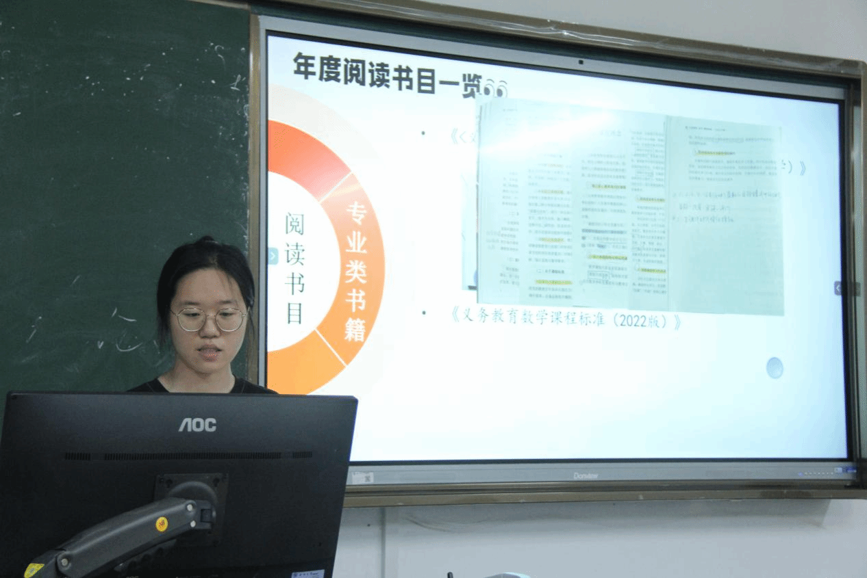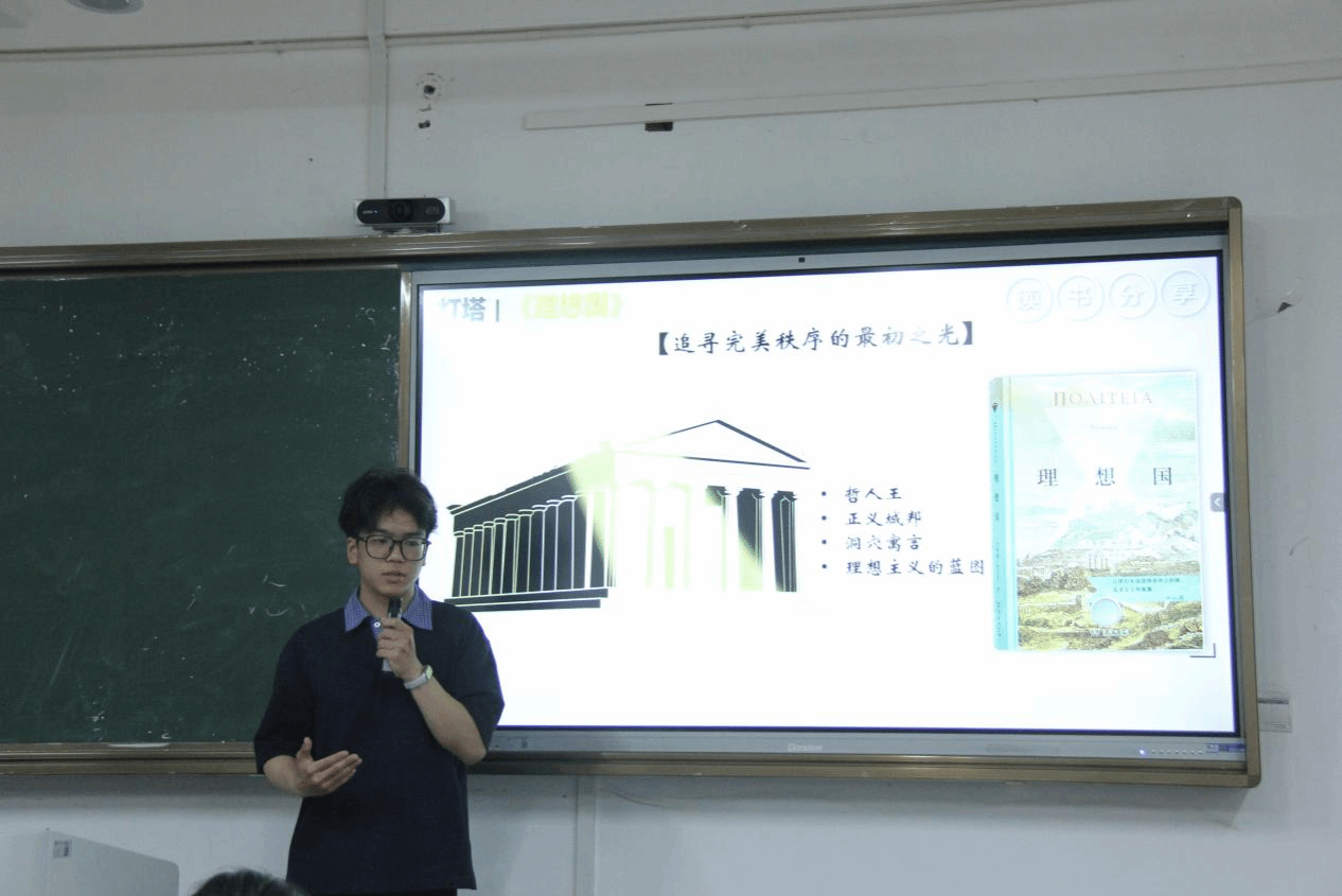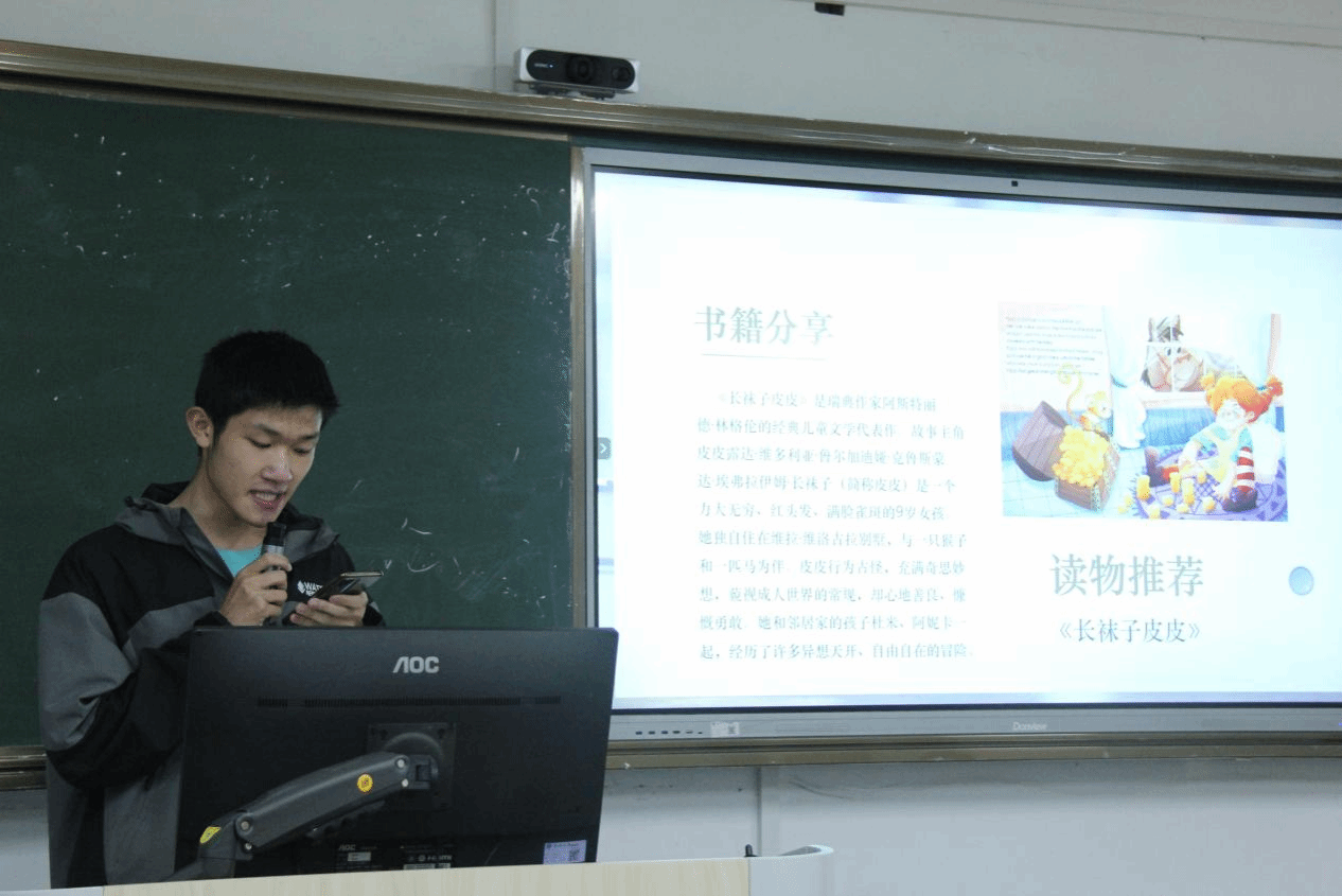 “曾经我是一颗种子,如今它在长大。”23小教2的王艺梦同学根据《爱的教育》梳理相关情节和主题价值,制作ppt,进行宣讲,用ai制作视频,表达自己对书籍中体悟到的生命与成长。23教技班蒋远同学点燃思维火炬。他以“镜与灯:在乌托邦与敌托邦之间”为题,展开了一场跨越千年的思想对话。23小教3林家伊同学则从几个方面介绍了自己阅读的书籍阅读课程标准表达了自己对于课程标准变化的思考。阅读为我们提供锦囊,使我们在未来的人生中不至于两手空空。