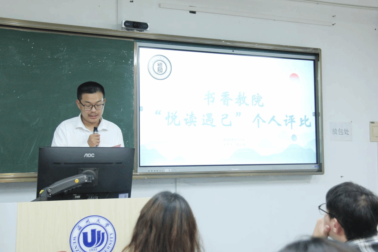 腹有诗书气自华,阅读涵养品性,书香浸润人生。6月11日晚,90直播 "悦读遇己"个人阅读评比大赛在北校区瓯4-311教室开展。90直播 学工办辅导员李金伟老师担任评委进行打分。现场九位参赛学子以书为媒,展开了一场穿透纸背的思想交锋。