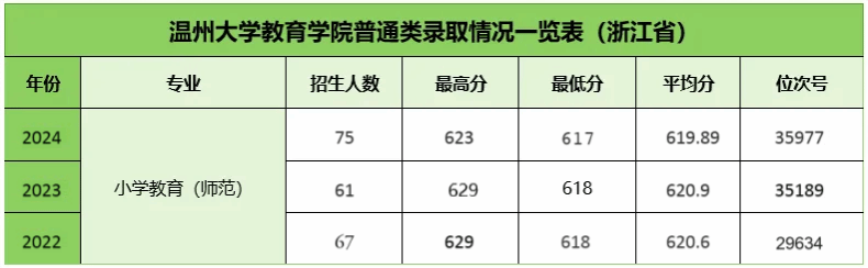 温州大学小学教育专业历史悠久,2001年开始本科招生,2013年拥有教育硕士专业学位授予权,2019年获批国家首批一流本科专业。小教专业既有“老中师”重技艺的扎实风格,又有“本科师范院校”重专业素养的气质。师资力量雄厚,专业声誉良好,近年来在全国301个同类专业中排名14名左右。
