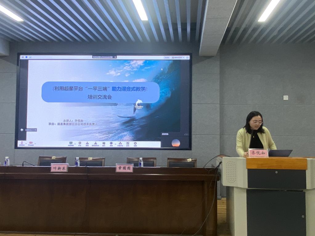 随后,超星集团浙江分公司技术负责人齐悦如从教师如何建课、具体操作流程、使用的注意事项等方面,为全体教职员工作了《利用超星平台“一平三端”助力混合式教学》的专题培训。培训结束后,针对老师们提出的各种疑虑一一作了解答。