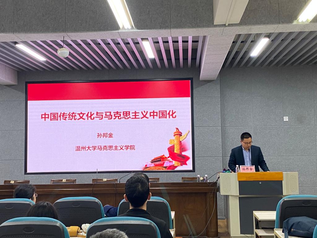 会议邀请马克思学院副院长、孙邦金教授作《中国传统文化与马克思主义中国化时代化》专题报告。他从“两个结合”、“传承文明”、“文明互鉴”等方面讲解中国传统文化,并结合习近平总书记近十年对河南殷墟、福建武夷山、山东曲阜孔府等地的考察,从经济、政治、个人道德修养、思维认识四个层面深刻阐释了马克思主义对传统的“默会”与“契合”。他指出,党的二十大是处于关键历史关口的一次重要大会,是一份马克思主义的纲领性文献,弘扬和赓续中国优秀传统文化,不仅是执政党的执政资源,也是执政党的执政责任和崇高使命。报告内容丰富、数据详实、语言幽默、视野开阔,学院教师备受启发。
