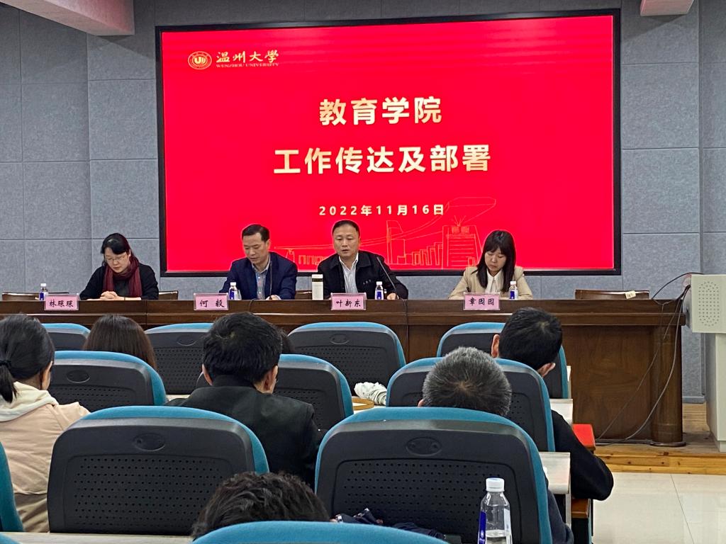 分管领导传达及部署学院工作。叶新东副院长从超星平台建课、教育教学工作两个方面作了工作部署,并对相关工作提出具体要求。林琛琛副院长就专业见习、教学督导、课程互听互评、妇联工作四个方面进行了梳理,并对接下来的工作作了具体部署。章园园副书记通报了学院学生在学科竞赛中取得的优异成绩,同时就班主任考核、校运会、特殊学生工作等做了具体部署。