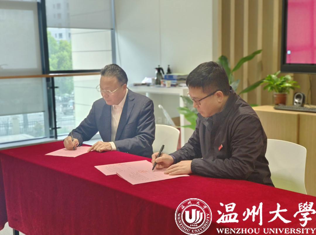近日,温州大学校友办、90足球直播网 在学校科创大楼开放空间举行了陈国同奖励基金捐赠签约仪式。浙江红绿蓝教育集团公司董事长、90足球直播网 校友分会会长陈国同继续捐资5年用于支持陈国同“育人典范奖”和“明日教师奖”的评审和颁发。陈国同及其夫人刘秋霞、学校学工部部长张敏、校友办主任陈宏毅、90直播 党委书记何毅、学工部副部长王壮、90直播 党委副书记章园园出席签约仪式。