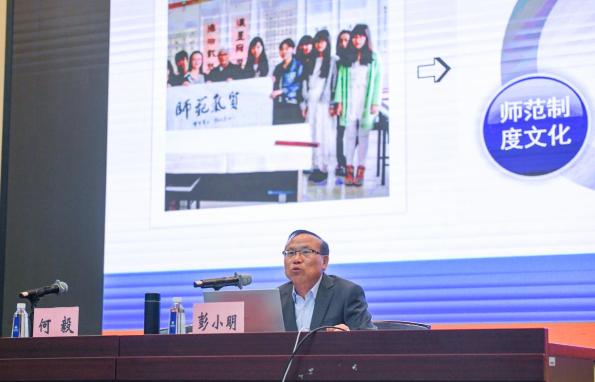 会议开展教师理论业务学习会。会议特邀彭小明教授作《国一流专业建设特点凝练、目标定位与实施策略》专题报告。彭教授通过“教书”与“育人”的统一、“科研”与“教研”的统一、“学科”与“专业”的辩证分析,分享了其对高校教育工作的认识。他以国家级本科一流专业建设——温大教院小学教育专业为例,系统论述专业建设的方向、核心、路径,凝练了国家一流专业的10个特征,并提出优化师资结构、巧借校院平台、深化地方合作、开展国际交流、实验名师培养等措施。何毅书记高度评价彭小明教授的专题报告。他指出,近年来学院专业建设立项取得标志性成果,但是专业内涵建设的任务更加迫切,彭教授既是小教专业建设的亲历者,也是学院发展的见证者,同时也是从事教育教学研究的优秀学者,他的报告结合学院近几年专业建设的举措和成绩,系统论述了国一流专业建设的特点、定位及实践操作,对推动学院各专业深化国一流专业内涵发展具有重要价值。