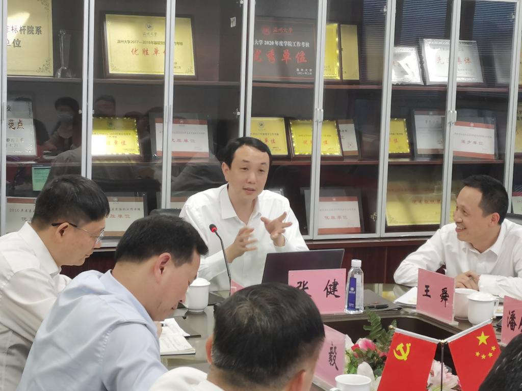4月18日下午,校党委书记张健莅临90直播 调研,副校长王舜、党校办主任蔡联群、宣传部副部长潘从义、教务处副处长夏远志、学工部部长张敏、教育发展研究院院长蒋金崇、温大附属学校校长屈小武和温大附属实验幼儿园园长陈娴等陪同调研,学院领导班子出席调研会。