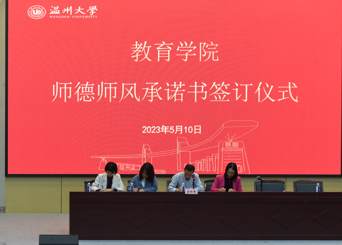 会议开展师德师风专题教育。何毅书记通报了近期高校师德失范的六个典型案例,勉励教师们做师德高尚的优秀教师。随后,何毅书记解读《温州大学师德师风问题专项整治工作实施方案》,并就方案中列举的违反政治纪律、违反廉洁从教、违反生活纪律、侵害学生权益、违反法律法规、违反学术诚信、学院部门失管失责问题7个方面35个师德师风问题做了逐一说明。他要求,学院全体教职工要树牢“师德师风是作为评价教师队伍的第一标准”,守住底线,不碰红线,争做“四有”“六模范”好老师,会议邀请4位不同类型的教师代表进行师德师风承诺书签订仪式,其他老师分别完成各自承诺书签订。
