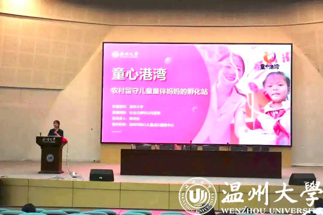 为了让师生对科创赛事有更直观的体验,90足球直播网 2023年挑战杯金奖项目《童心港湾——农村留守儿童童伴妈妈的孵化站》项目负责人陈怡佳进行现场路演。她结合国家政策,讲述了这个项目产生的由来。通过项目背景、市场痛点、国家政策以及地方政策,充分论证了这个项目的可行性以及必要性。