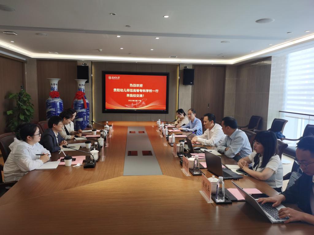 2023年5月17日上午,贵阳幼儿师范高等专科学校副校长潘丽芬带领学生处副处长戴媛媛及相关人员一行来访交流。校党委委员、副校长王舜,学工部部长张敏,教育学院党委书记何毅、党委副书记章园园,学生处超豪学区办公室主任郑光西,90直播 辅导员代表参加座谈交流。座谈交流在校友之家举行。