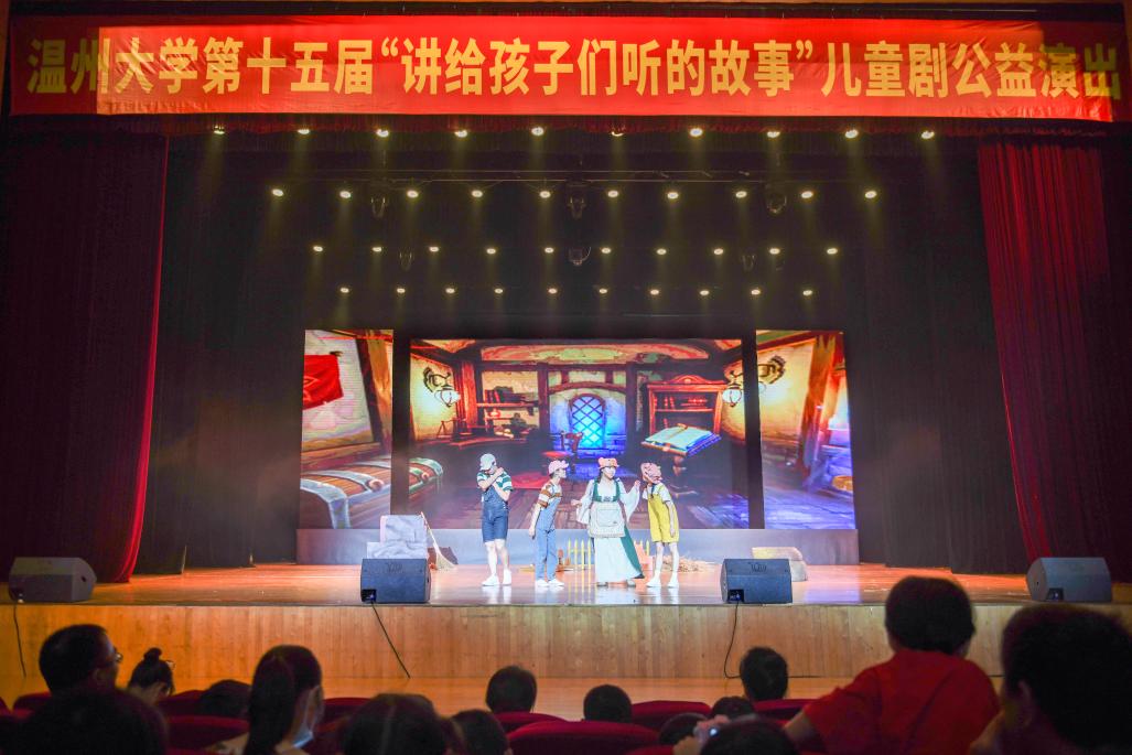 据悉,今年是童欣儿童剧团举办“讲给孩子们听的故事”儿童剧公益演出的第15年。从2009年开始,90足球直播网 师生秉承师范教育传统,发挥学科专业优势,以关爱儿童、服务社会为宗旨,致力于多种类型儿童剧编创、制作和演出,多年来送戏给城镇、山区、海岛、革命老区的儿童,足迹踏遍温州,辐射省外……十五载守候,十五载坚持,童欣儿童剧团先后推出《魔王卡卡》等30多个短剧和《我不要被吃掉》《白雪皇后》《了不起的狐狸爸爸》《魔法玻璃鞋》《小美人鱼》等大型童话剧作品,已累计演出100多场,参演人数共计4000多人次,受众多达12万余人,既是温州大学的一大校园文化特色品牌,也是温大服务地方的一张“金名片”。