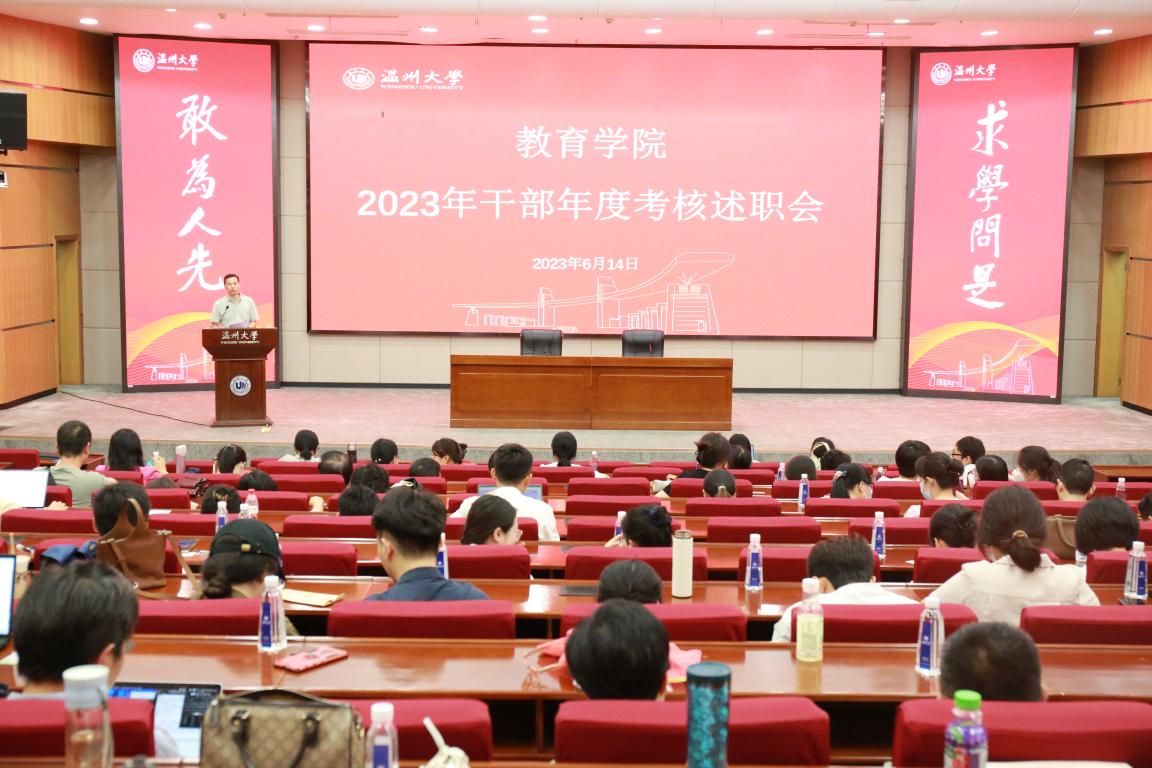 6月14日下午,90足球直播网 2023年干部年度考核述职会在育英图书馆二楼报告厅召开,学院领导班子及全体教职员工参加本次会议。