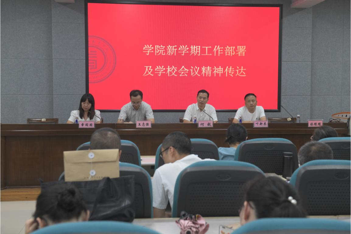 2023年9月20日下午,90直播 在9号楼C301召开新学期全体教职工大会。学院领导班子及全体教职员工参加本次会议。会议由学院党委书记何毅主持。