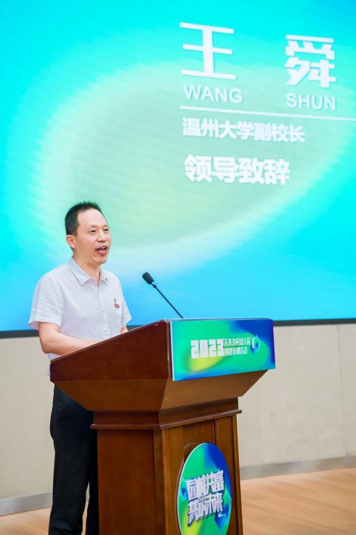 王舜副校长致欢迎词。他强调人生百年,立于幼学,温州大学在学前教育领域具有深厚基础和显著优势,长期关注并致力于服务温州学前教育事业的发展。本次活动积极响应市委市政府关于乡村振兴、教育共富的号召,发挥温州大学学前教育的学科优势和专业特长,以专业的人才团队、丰富的教育资源和深厚的科研实力为基础,厚植温州学前教育协同发展沃土,致力于推动温州市各乡村幼儿园的高质量发展,振兴乡村学前教育、赋能乡村振兴。