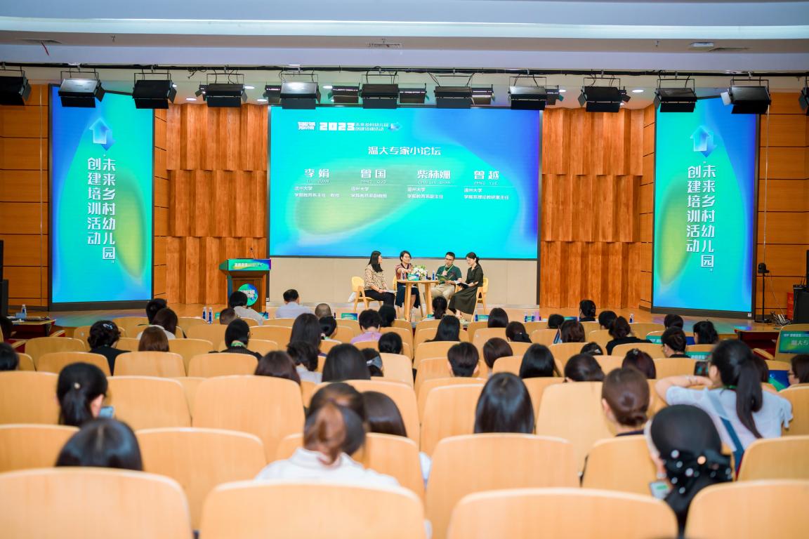 温州大学学前教育系李娟、曾国、柴林姗和曾越四位专家以圆桌论坛的形式作学术分享。他们围绕乡村和幼儿园的关系、未来乡村园的图景和特质、现代教育如何与乡村韵味相结合以及高校教师在未来乡村园建设中的角色展开学术讨论,现场听众掌声阵阵、反响热烈。