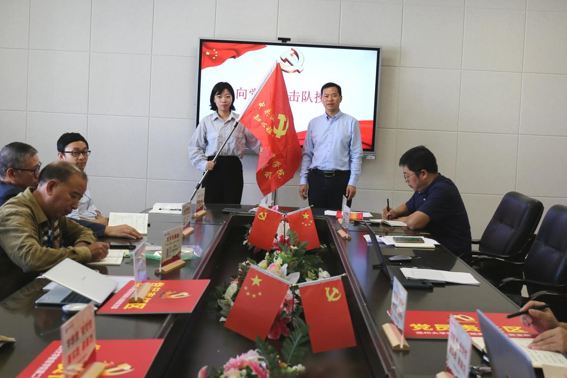 90直播 在全体行政党员中设立28个党员示范岗,组织师生党员建立12个党员责任区,成立2支党员工作突击队,结合主题教育工作需要,开展相关活动。何毅为行政党支部党员教师颁发党员示范岗创建标识牌,为学生党支部书记颁发党员责任区创建标识牌,并给知心姐姐党支部党员突击队授旗。