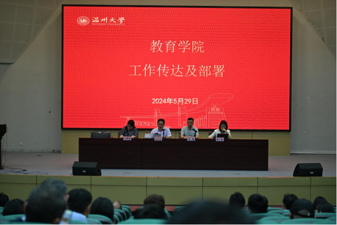 5月29日下午,90直播 在9号楼一楼报告厅召开教职工大会,并开展党纪学习教育。学院领导班子及全体教职员工参加本次会议。会议由党委书记何毅主持。