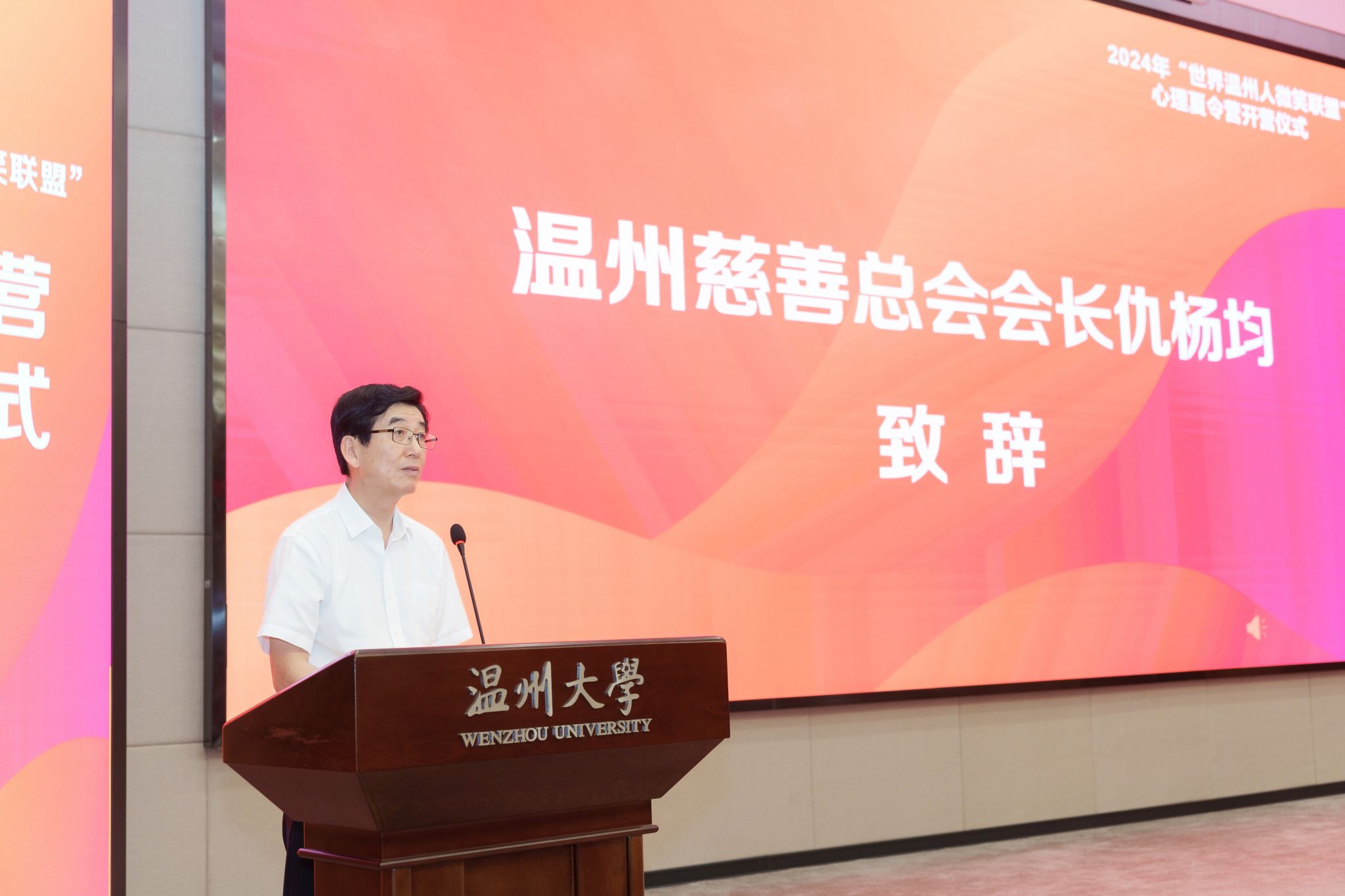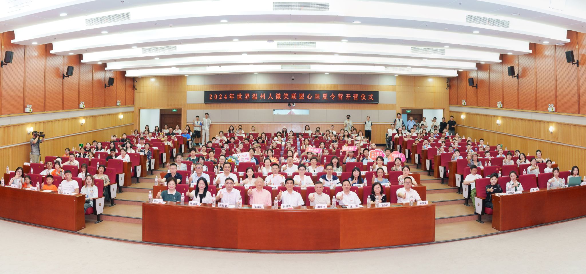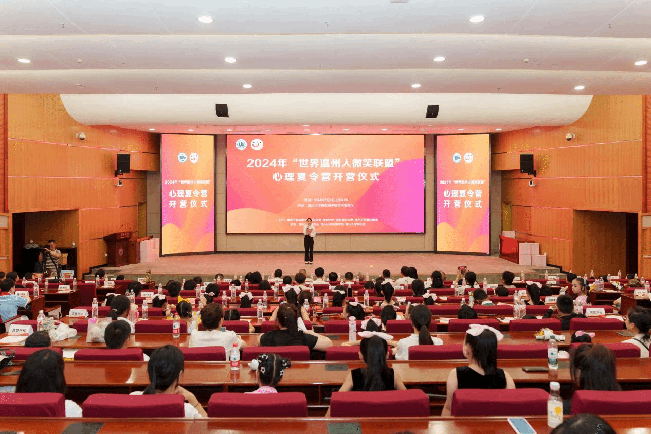 7月8日,“世界温州人微笑联盟”第十二期心理夏令营在温州大学正式开营。世界温州人微笑联盟会长何纪豪、温州市慈善总会会长仇杨均、温州市委统战部副部长周燕伟、温州大学副校长王舜出席开营仪式并致辞。温州大学、温州医科大学、温州市台办、温州市慈善总会、世界温州人微笑联盟、温州日报报业集团、温州市啸秋中学、温州市蒲州育英学校、温州市育英学校等单位的领导、嘉宾、师生代表等共150余人参加开营仪式。