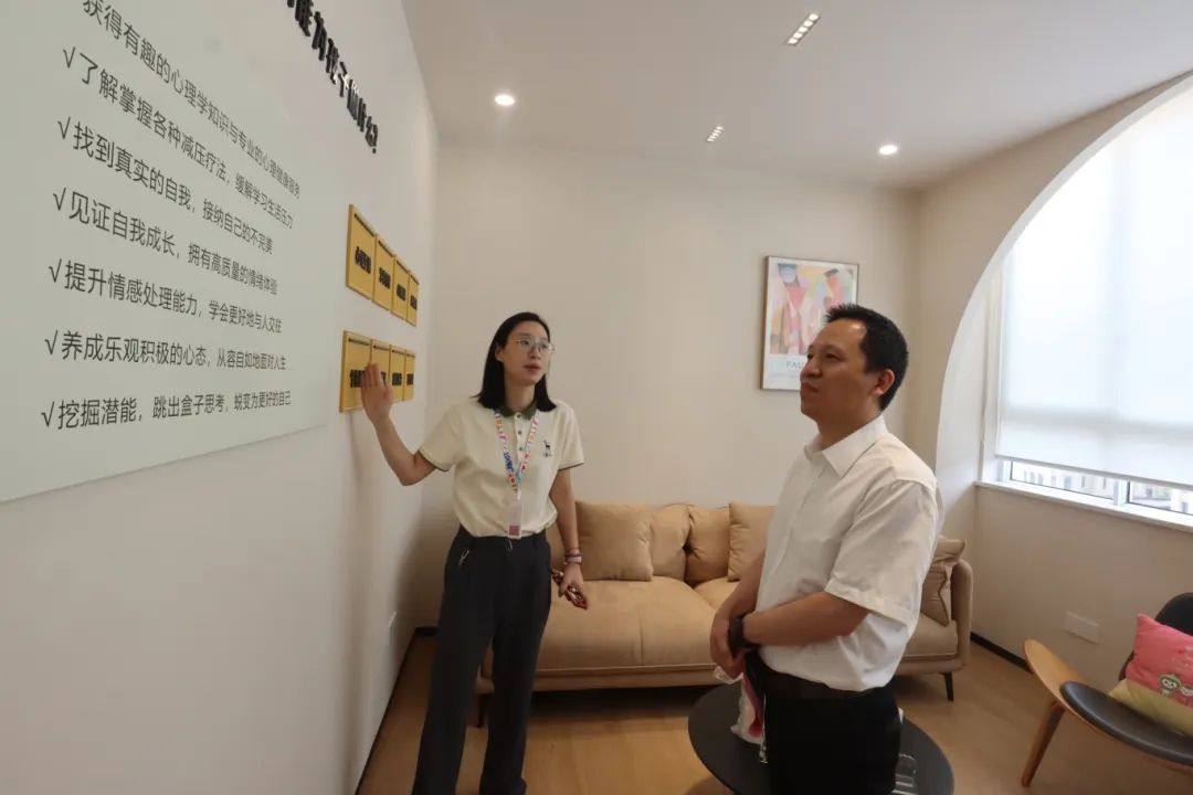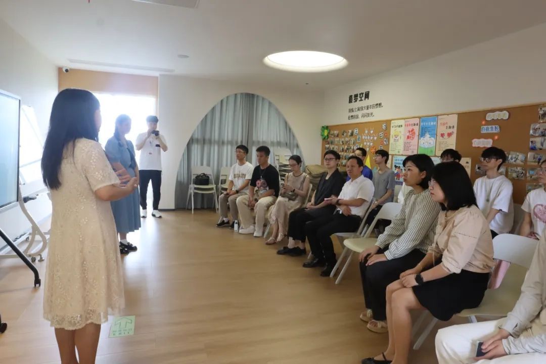 2024年7月9日,温州大学副校长王舜率队莅临温州市鹿城区青少年心灵润养中心,为90直播 在此开展暑期实践的“心翼”团队带去了深切的关怀与殷切的期望。温州市鹿城区教育局党委委员、教育发展服务中心主任潘智敏向王舜副校长一行分享了中心建设的理念和鹿城区心理健康教育工作特色,小鹿心屿运营负责人唐璐璐老师详细介绍了中心的建设运营和心理服务开展情况。国际交流与合作处处长陈慧、学院党委副书记章园园、团委副书记徐瑶、学院学工办主任严晓秋等陪同慰问,并举办了一场别开生面的座谈会,为心翼暑期社会实践队之旅添上了浓墨重彩的一笔。