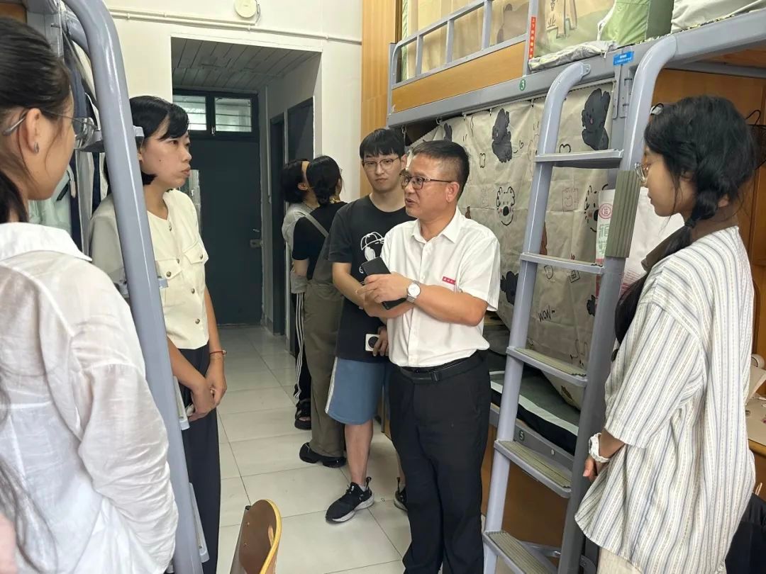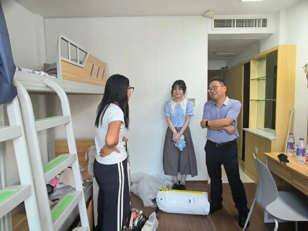 领导老师、辅导员们走访寝室。期间,领导老师们亲切地和学生们进行沟通,一是悉心解答新生们提出的疑问,希望寝室同学互相帮助,并详细讲解宿舍规则;二是殷切嘱咐同学们安全第一,提高防诈骗意识,注意用电安全、食品安全、财产安全;三是引导同学积极表达自己所思所想,就学校初印象进行了交流,并祝福同学们能在温大收获成长。