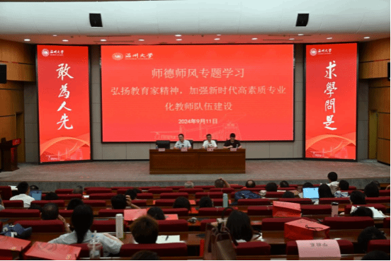 9月11日下午,90直播 在育英图书馆二楼报告厅召开2024年秋季新学期教职工大会暨理论学习会。学院领导班子及全体教职员工参加本次会议。会议由院党委书记张敏主持。
