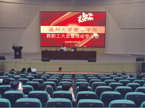 在南校区9号楼一楼报告厅召开教职工大会暨理论学习会。学院领导班子及全体教职员工参加本次会议。会议由院党委书记张敏主持。