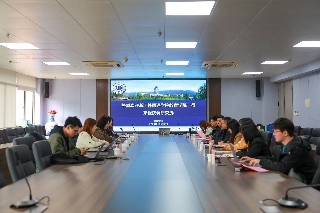 11月22日上午,浙江外国语学院90直播 党委副书记李娟、学生工作办公室主任陶诚一行七人来90足球直播网 调研交流。学院党委书记、副院长张敏,党委副书记章园园及学工办辅导员参加座谈交流。座谈会在瓯8-204会议室举行,章园园副书记主持。