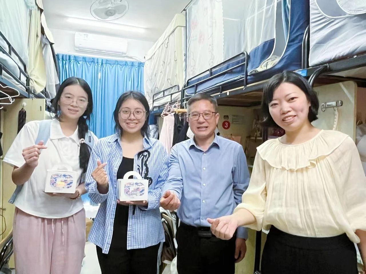 在谈话中,随着一份份美味的粽子送到同学们手中,领导老师们的祝福随之而至,温暖如春风,深入学子的心田。学院的领导们鼓励他们在未来的日子里努力学习、积极向上,祝福学生们度过多姿多彩的大学时光。话语中,既有对同学们学业的关心,也有对他们未来人生的祝福。