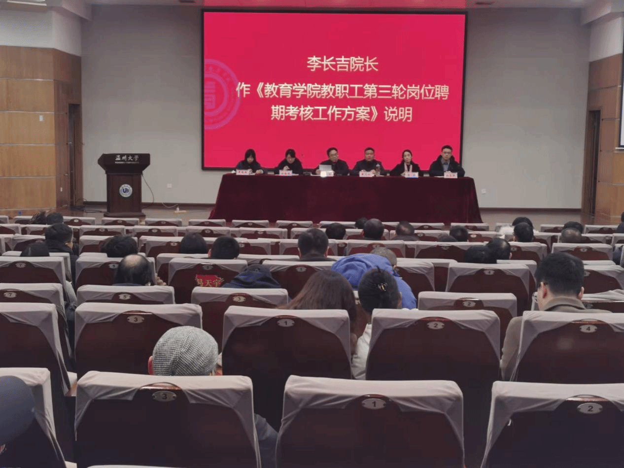 随后,院长李长吉对《90直播 教职工第三轮岗位聘期考核工作方案》进行了详细解读。该方案旨在全面、客观、公正地评价教职工的工作实绩,激发教职工的工作热情和创新精神。全体教职员工审议并通过了《90直播 教职工第三轮岗位聘期考核工作方案(草案)》。会上还通报了近期学院内发生的一起教学事故,并对相关当事人进行批评教育。会议强调,全体教师要以案为鉴,自觉遵守学校规章制度,坚守岗位,充分履职,以更加严谨的态度、更加扎实的作风,投入到教育教学工作中,为学校事业发展做出自己应有的努力。
