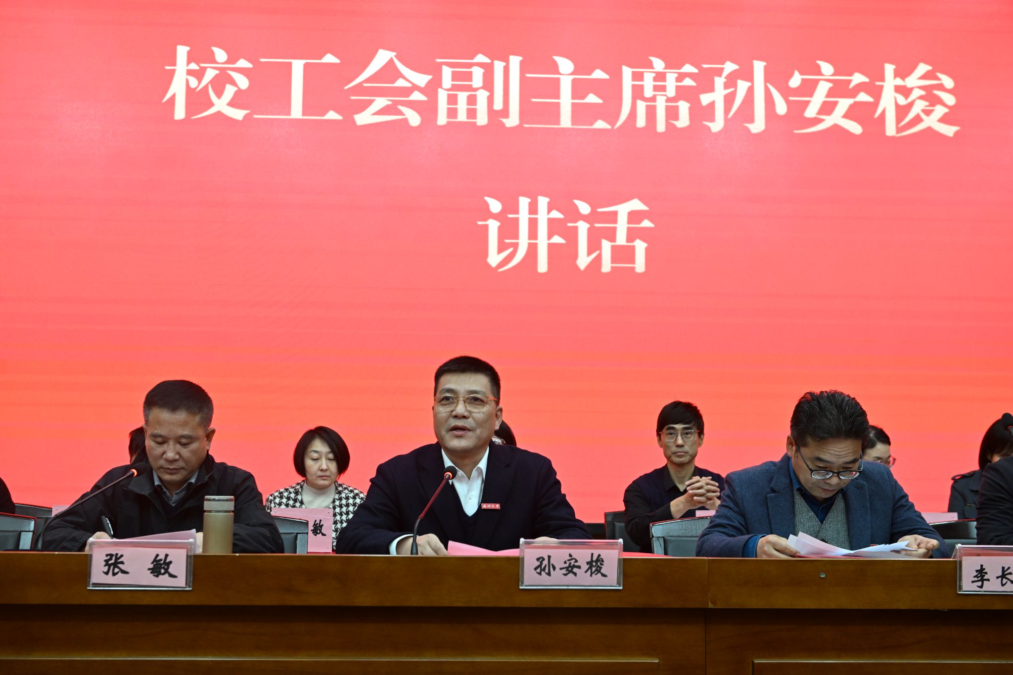校工会副主席孙安梭出席并讲话。他指出,过去一年,90直播 在人才培养、学科建设、科学研究、社会服务等方面取得了丰硕成果,成绩的取得是学院党政班子科学谋划的结果,更是全体教职工团结奋斗的结晶。他代表学校工会提出三点希望,一是坚持党的领导,确保政治方向;二是聚焦主责主业,服务发展大局;三是坚持以人为本,维护教师权益。孙主席表示,学校工会将始终与学院同心同行,充分发挥桥梁纽带作用,全力支持学院改革发展与民主建设。