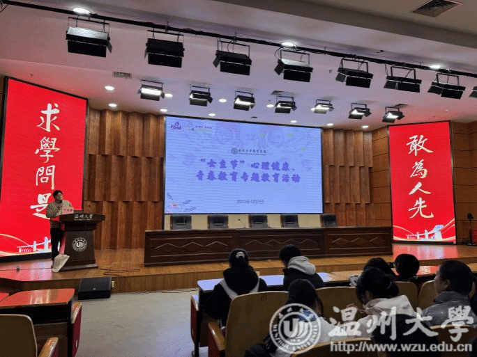 为加强90足球直播网 学生的心理健康和青春健康教育,提升大学生生育力保护能力,促进大学生身心健康成长,在第115个“三八”国际妇女节来临之际,学院于3月7日在岩松堂举办了一场别开生面的心理健康与青春教育专题教育活动。本次活动有幸邀请到了温州市人民医院(温州市妇幼保健院)的叶笑静、朱余东老师和心理中心张海音老师为同学们开展专题讲座。