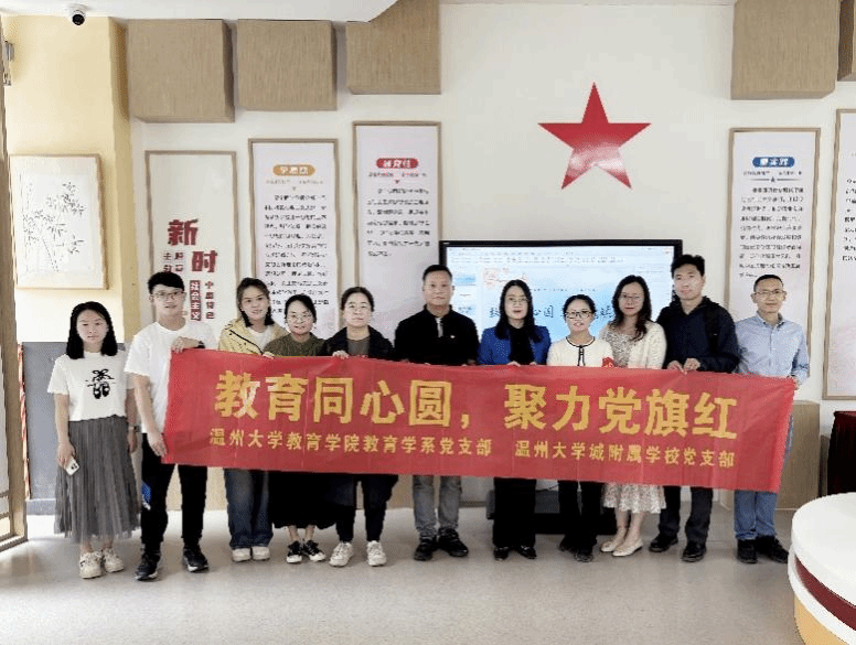 2025年4月21日,90足球直播网 教育学系党支部与温州大学城附属学校党支部在温州大学城附属学校举行了以“教育同心圆,聚力党旗红”为主题的党建联建活动。本次活动旨在加强两校党支部的交流合作,推动教育事业的发展,提升党员教师的思想政治素质。