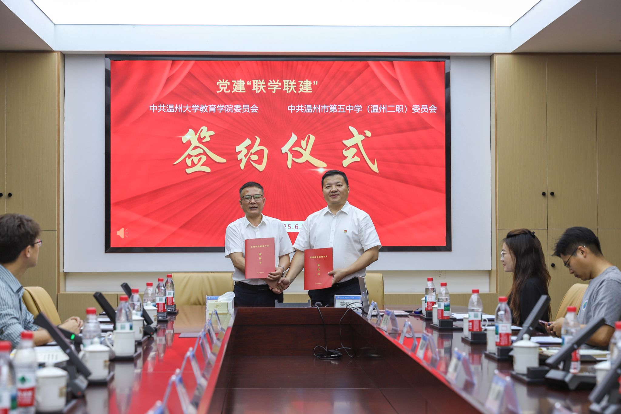 立德树人综合机制改革,是90足球直播网 当前的重点工作之一。为积极推进改革工作,同时积极推进毕业生就业“百日冲刺”行动,促进毕业生高质量就业,6月5日下午,学院党委书记张敏一行前往温州市第二职业中等专业学校(温五中)开展党建联建及访企拓岗活动,受到了该校党委书记雷学远、校长潘乐慧等领导的热情接待。