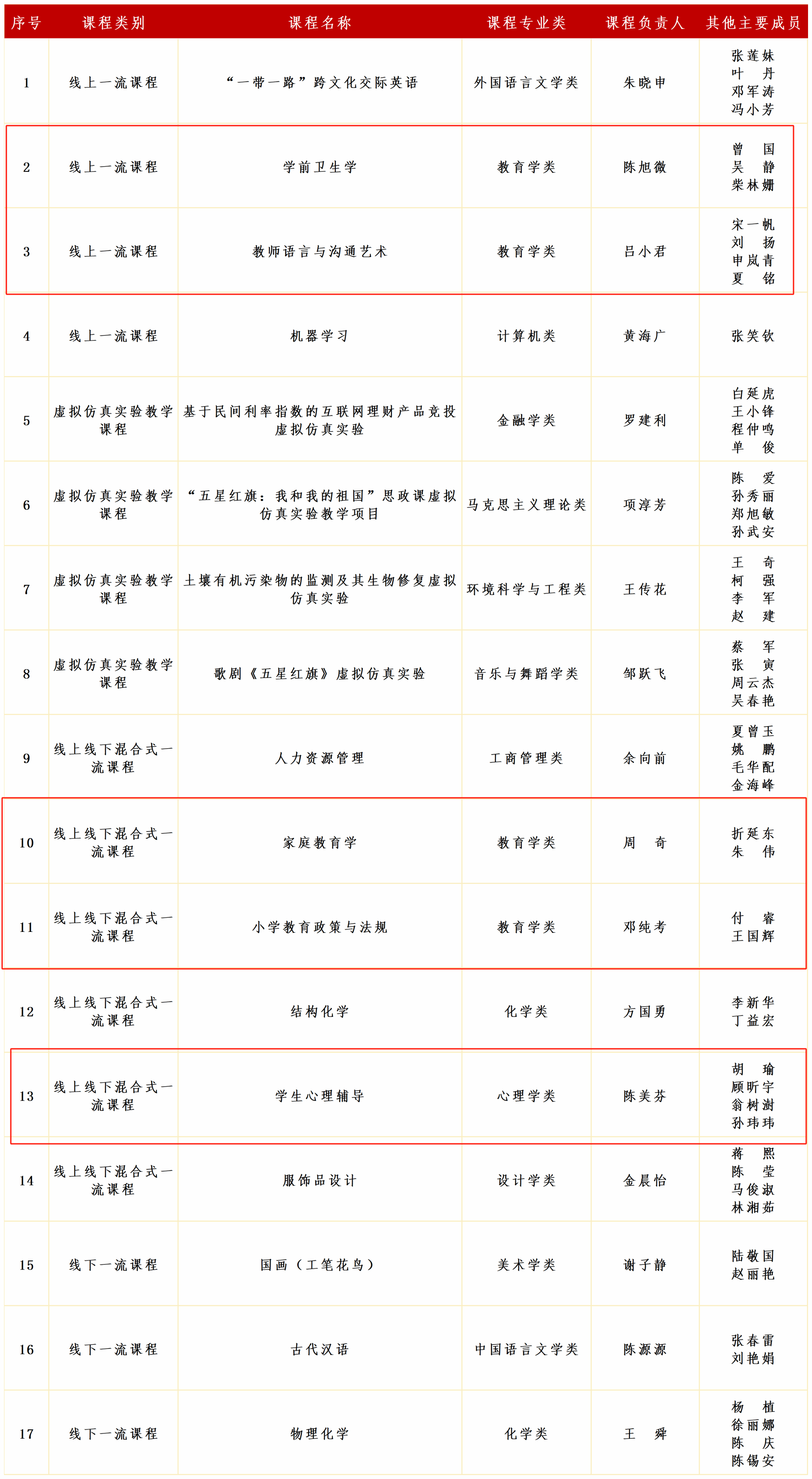 近日,教育部正式公示第三批国家一流本科课程认定名单,90足球直播网 《学前卫生学》(负责人:陈旭微)、《教师语言与沟通艺术》(负责人:吕小君)2门课程入选线上一流课程,《家庭教育学》(负责人:周奇)、《小学教育政策与法规》(负责人:邓纯考)、《学生心理辅导》(负责人:陈美芬)3门课程入选线上线下混合式一流课程。另外,90足球直播网 新引进王鹏老师的《心理测量学》入选社会实践一流课程。本次入选课程门数位居全校第一,实现了历史突破,标志着学院在本科课程建设与教学改革方面取得了重大进展。